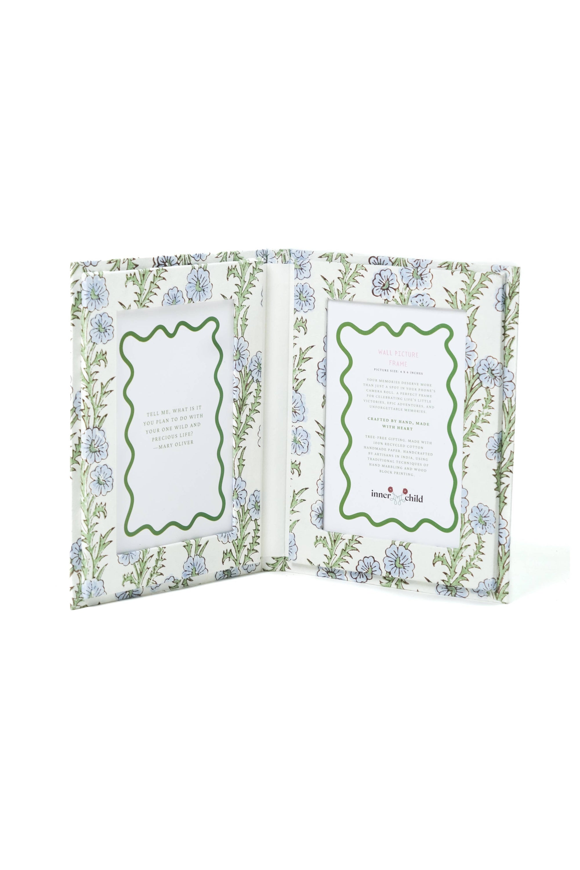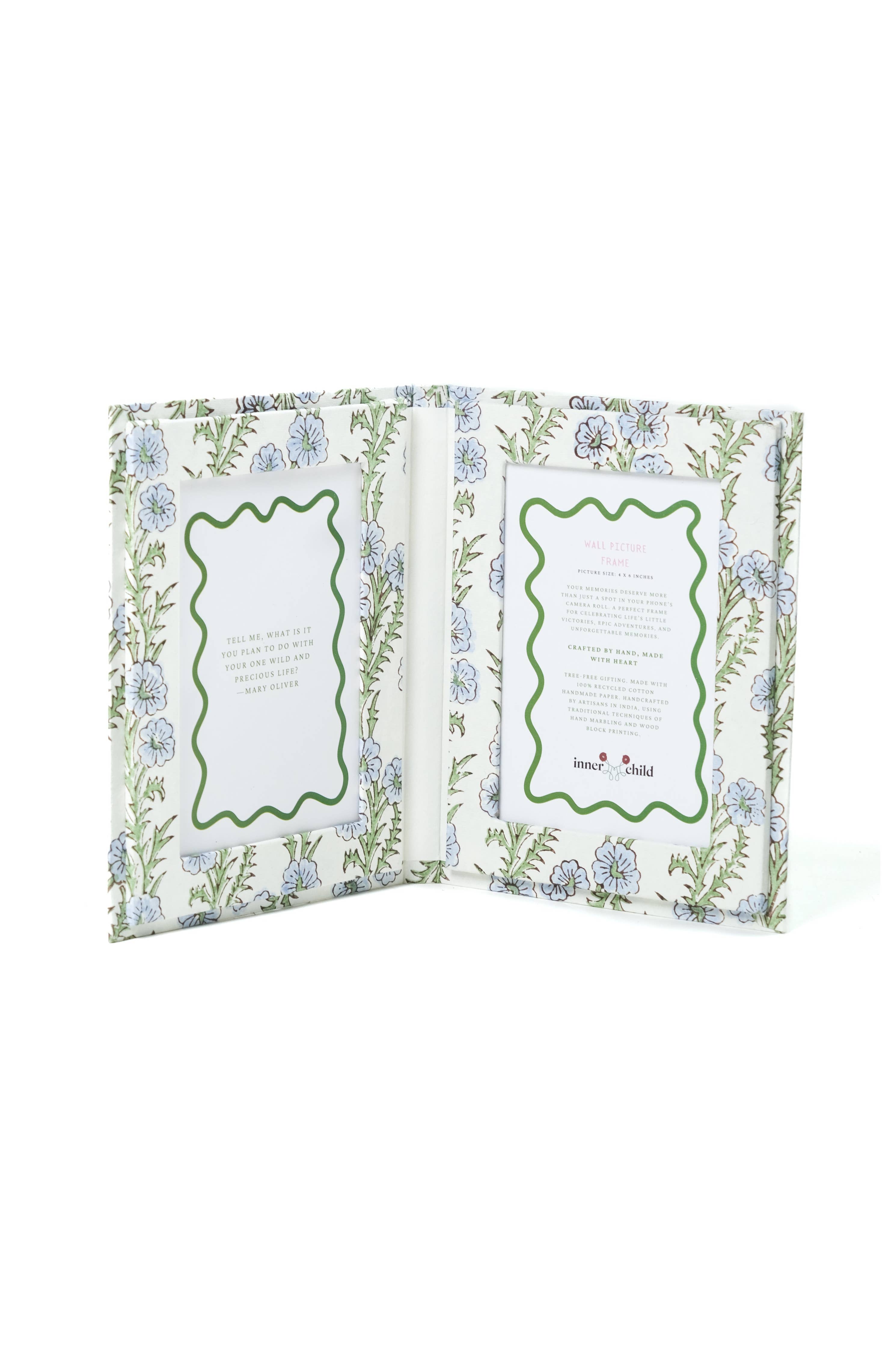 Blockprint Picture Frame Folding Book, 4x6 in Forget-Me-Not