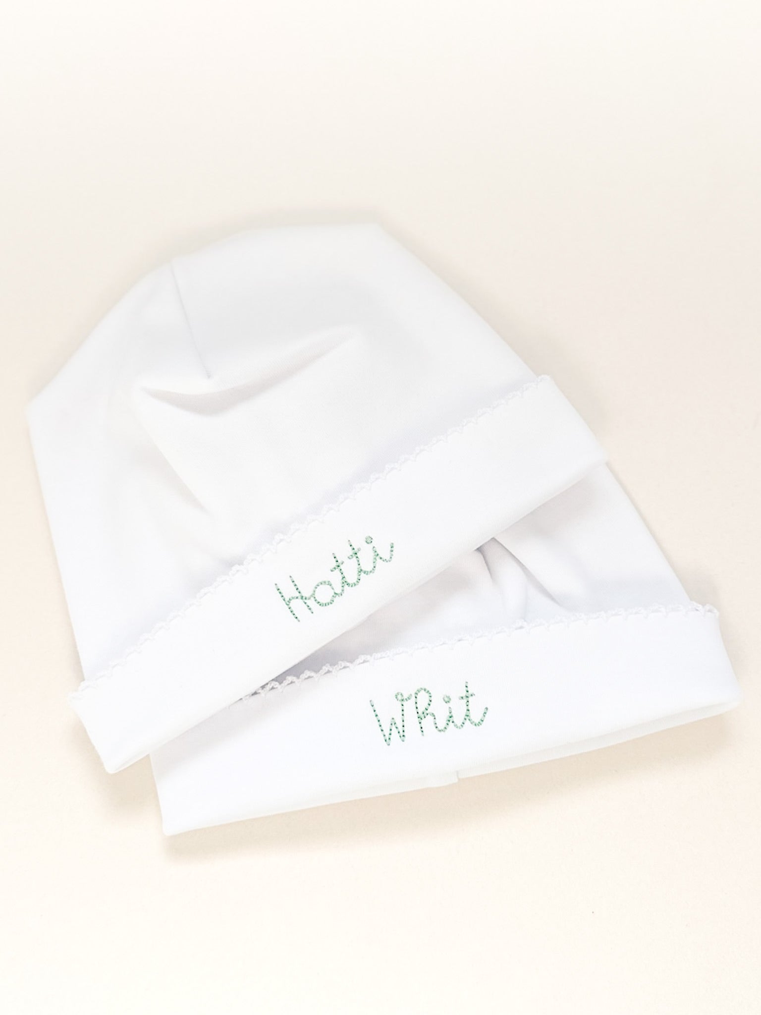 Our Picot trimmed Hats come in one size and made of 100% Organic Cotton to match our Picot trimmed Footies!