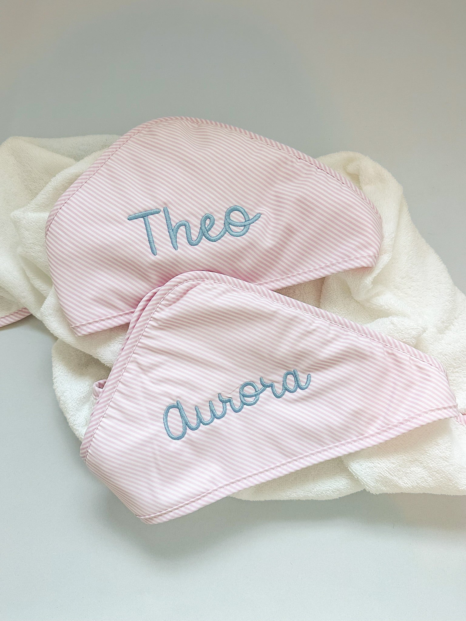 Make bath time fun with our Striped Hooded Towel. White terry hooded towel with stripe hood.