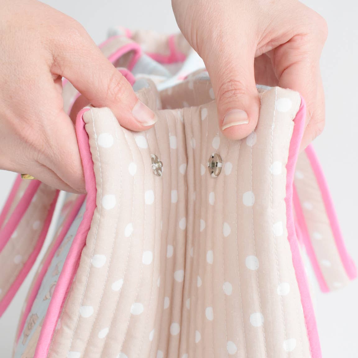 Our oversized shoulder tote works beautifully for day trips! Bring to the farmer's market or the beach! With snaps at each end, you control the size!