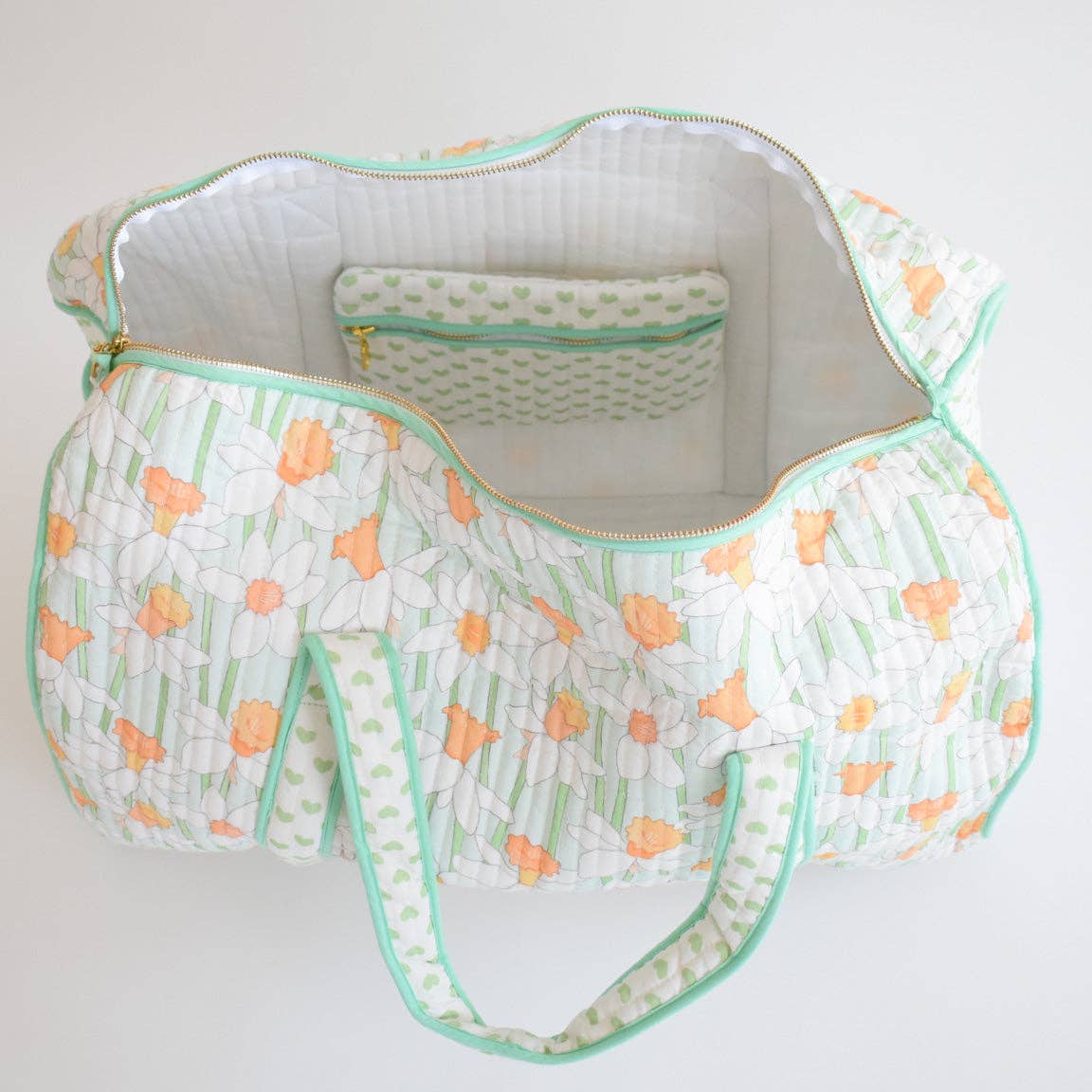 Travel in style with our hefty, quilted tote! Super roomy { and soft + comfy! }... just the bag for your next weekend away!