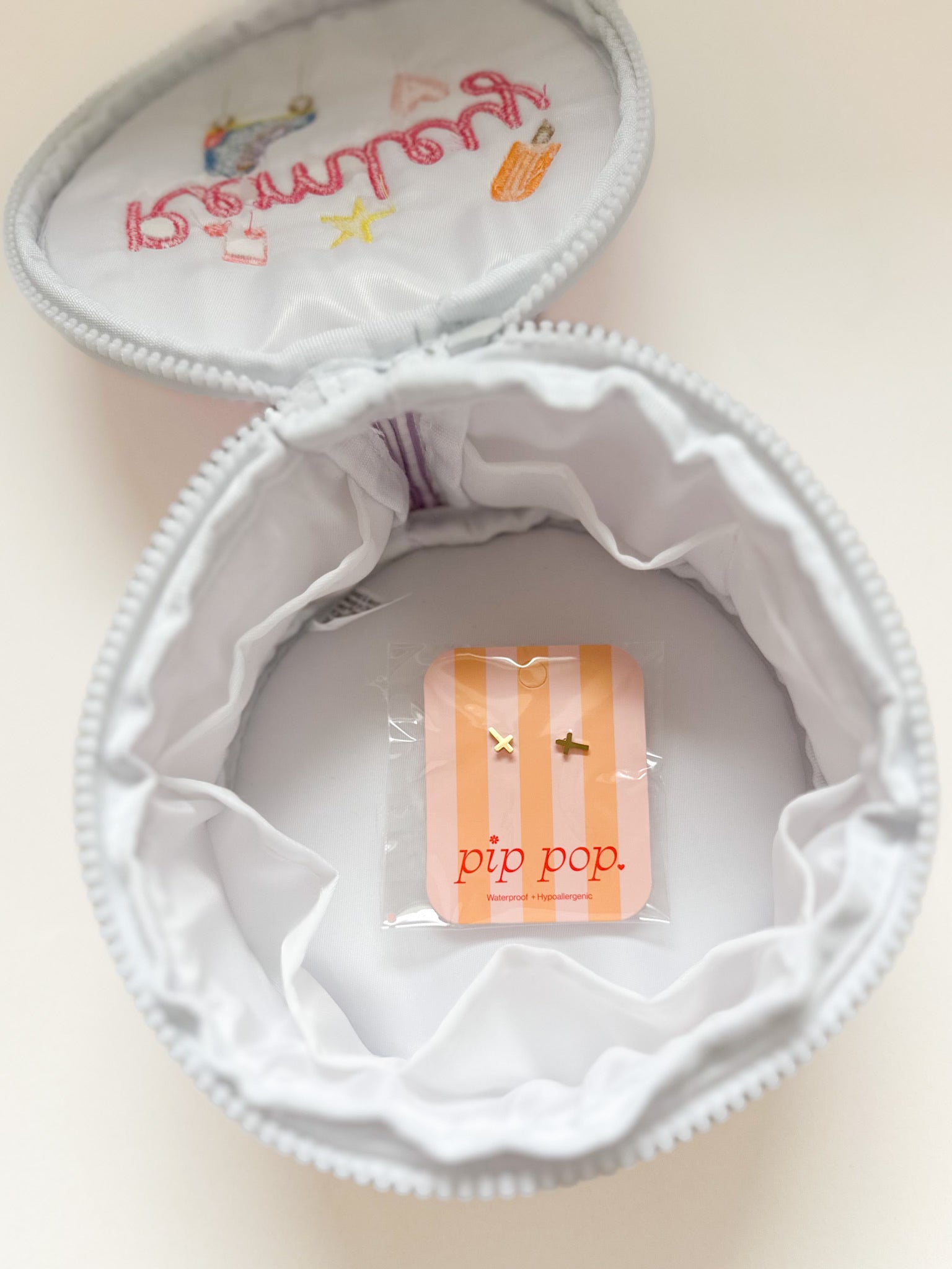 Cute as can be! This little cutie is lined with little open pockets for jewelry or makeup. Sweet little gift for every age!